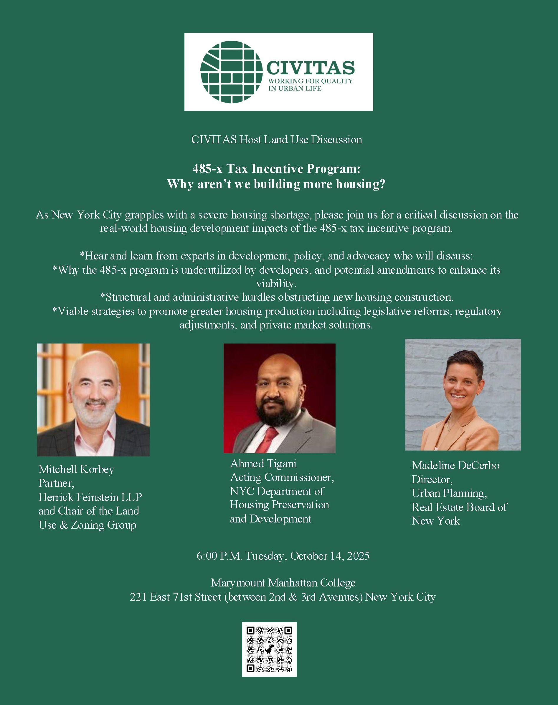 In 1986, CIVITAS initiated a study, No More Tall Stories, which makes the case for lower buildings, with the same heights as their neighbors, and elimination of plazas along Upper East Side avenues. Paul Newman narrates the video illustrating the issue.