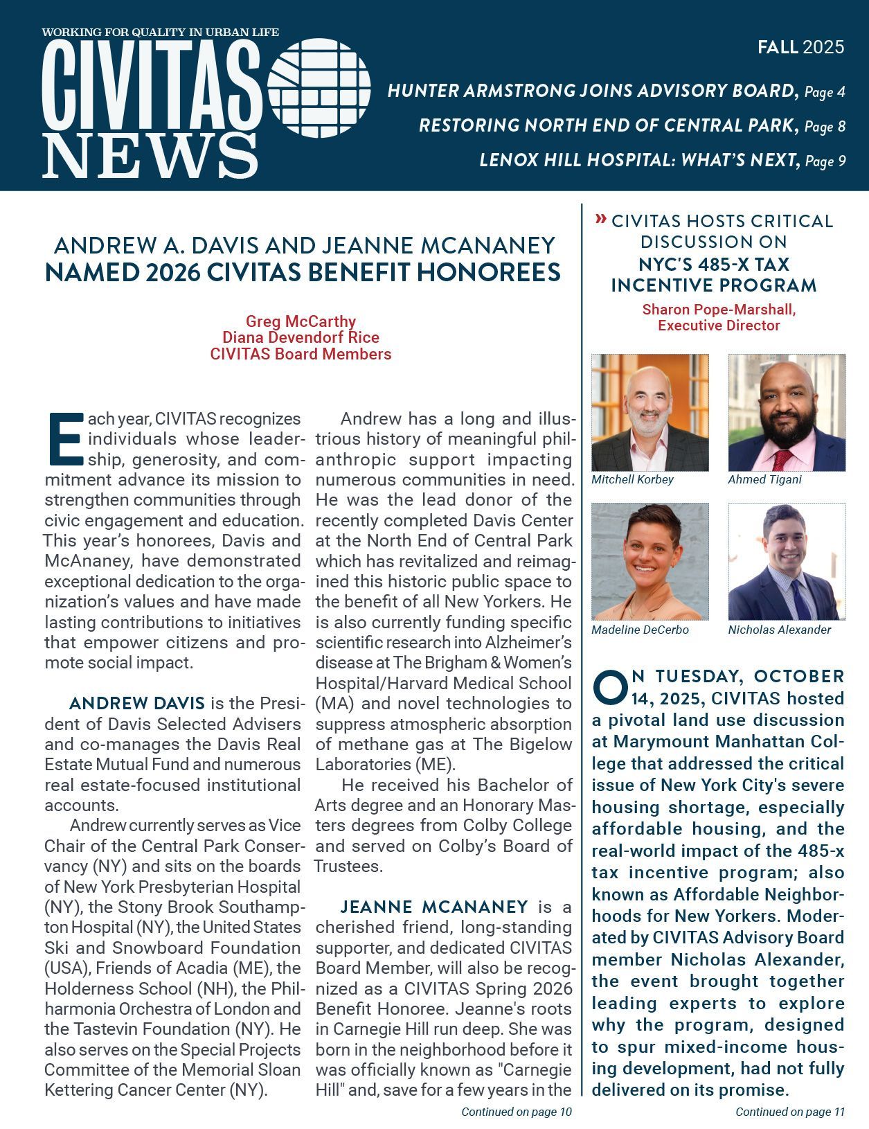 CIVITAS News is a quarterly newsletter dedicated to issues facing the neighborhoods east of Central Park between 60th and 125th St.