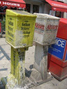 We are working closely with many other civic organizations throughout New York City to ensure compliance with the newsrack law of 2002, which was amended in 2004 to eliminate the requirement to maintain dirt and graffiti free newsracks. The current regulations for publishers as well as a complete list of violations can be found on the NYC Department of Transportation’s newsrack website: http://www.nyc.gov/html/dot/html/sidewalks/newsracksintro.shtml